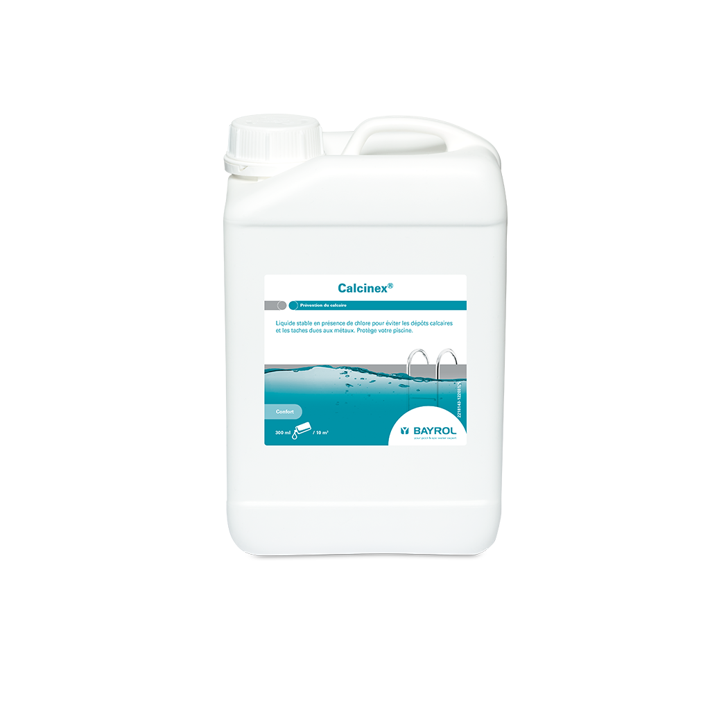Avertissements : Calcinex® a un effet préventif contre les colorations dues aux métaux ; il n’élimine pas les métaux déjà précipités ni les colorations existantes. Ne jamais mélanger sous forme concentrée différents produits chimiques. Ajoutez toujours le produit dans l’eau et jamais le contraire.