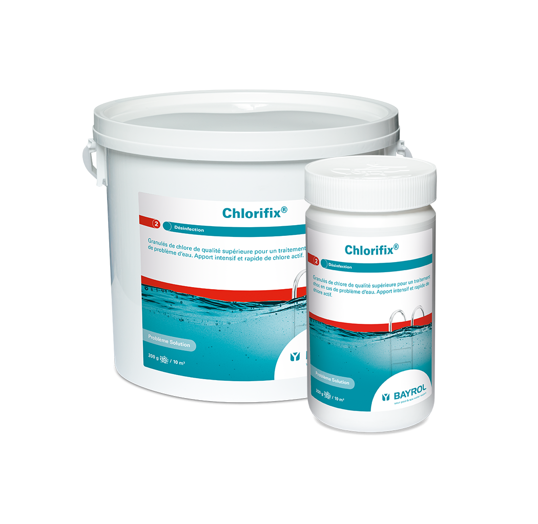 • En cas de problème d’eau, ajoutez 200 g de Chlorifix® pour 10 m³ directement dans l’eau de la piscine.