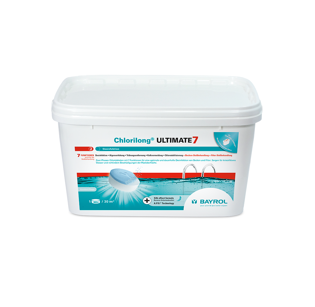 Recommandations : Laisser la pompe fonctionner pendant au moins 4 heures après ajout du galet. Le temps de dissolution du galet peut varier et dépend de la durée de fonctionnement de la filtration et de la température de l’eau. Par temps chaud ou usage intensif de la piscine, des quantités de chlore plus importantes peuvent être nécessaires. La filtration doit nécessairement fonctionner chaque jour (au moins un temps égal à la température de l’eau divisée par 2).