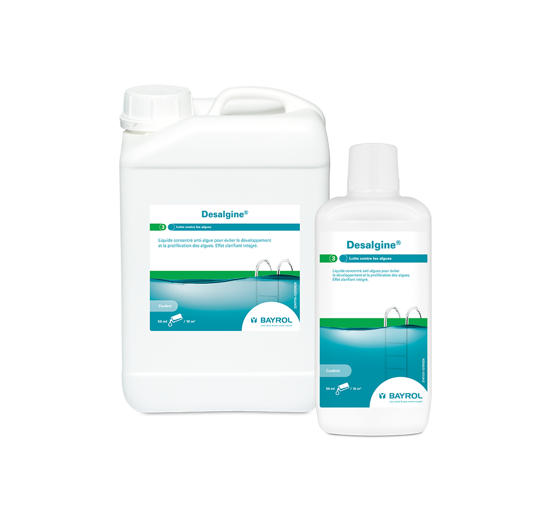• Présence d’algues : brossez les parois et nettoyer le filtre, réalisez le traitement choc habituel, puis versez 250 ml / 10 m3 de Desalgine®