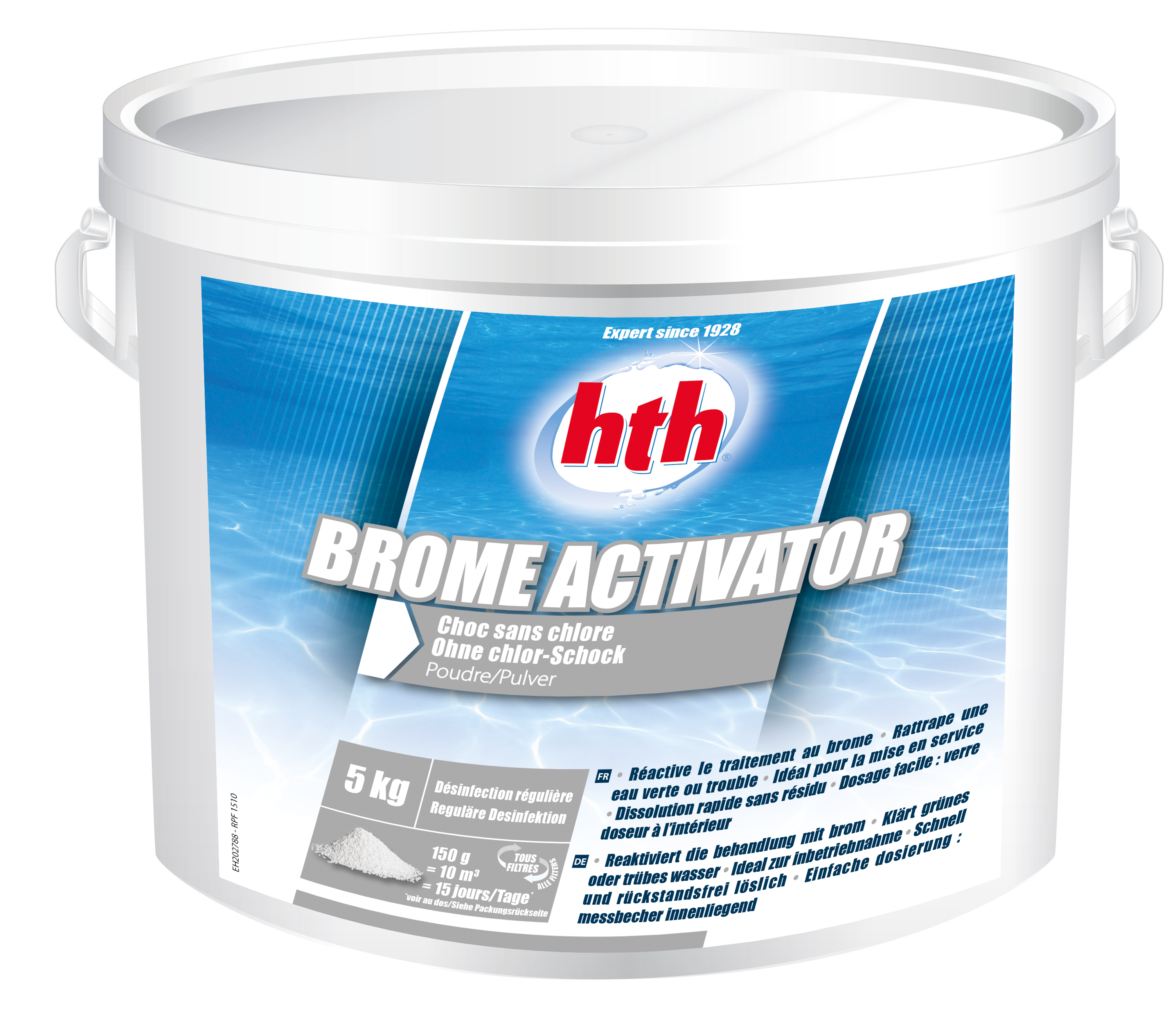 Prévoir 15 grammes par m³ d’eau, à la mise en service et, par la suite, toutes les deux semaines. Contrôler la teneur en brome avant d’autoriser la baignade.