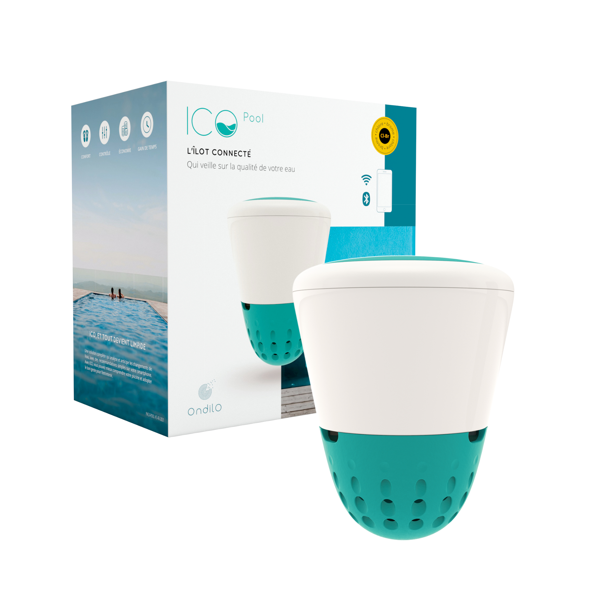 ICO est l’îlot connecté qui veille sur la qualité de votre eau de piscine. Il analyse, anticipe les changements de l’eau pour une eau toujours plus saine et claire. ICO formule des recommandations personnalisées de dosage et d’entretien, et ce directement sur votre application mobile, où que vous soyez. ICO se rend ainsi indispensable pour suivre les évolutions de votre piscine et adopter le bon geste pour l’entretenir, en toute simplicité.