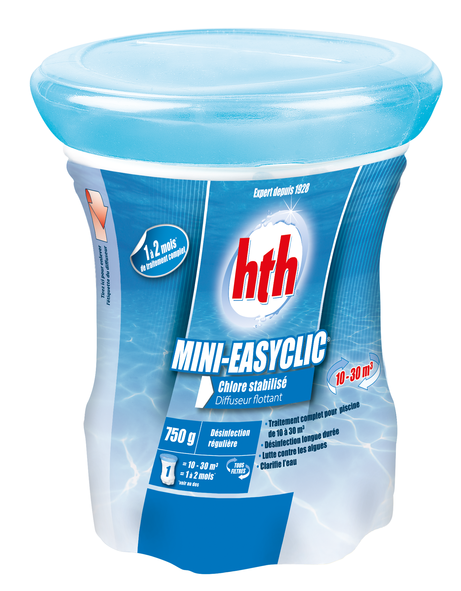 – Traitement complet multi-actions : 1. Désinfection régulière 2. Anti-algues 3. Clarifiant