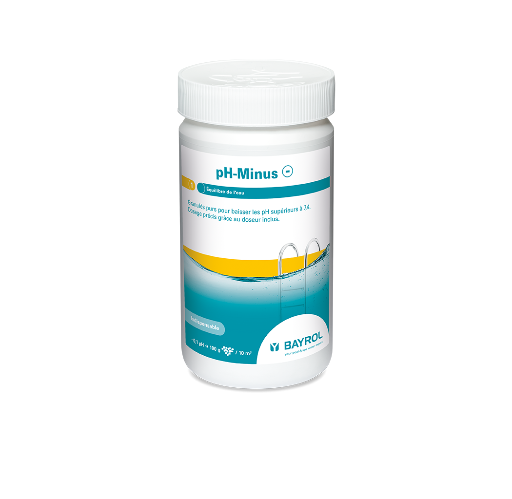 Avertissements : Ne mélangez jamais sous forme concentrée différents produits chimiques. Ajoutez toujours le produit dans l’eau et jamais le contraire. N’ajoutez jamais plus 300 g de pH-Minus pour 10 m³ à la fois.