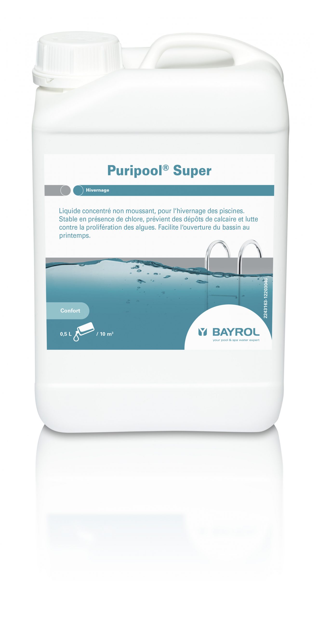 Puripool® Super est un produit liquide hautement concentré en matière active. Sa formule exclusive de très haute qualité prévient efficacement le bassin des dépôts de calcaire pendant la période hivernale.