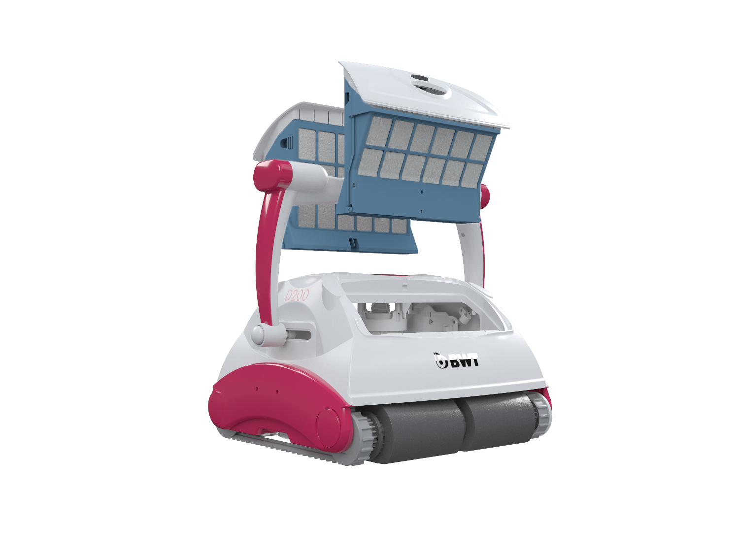 Les robots BWT sont équipés de la technologie Breezer, un système d’entrainement qui offre plus d’efficacité et une meilleure résistance; conjugué avec deux moteurs d’entraînement et une pompe puissante, le robot BWT D200 est l’un des robots les plus fiable sur le marché.