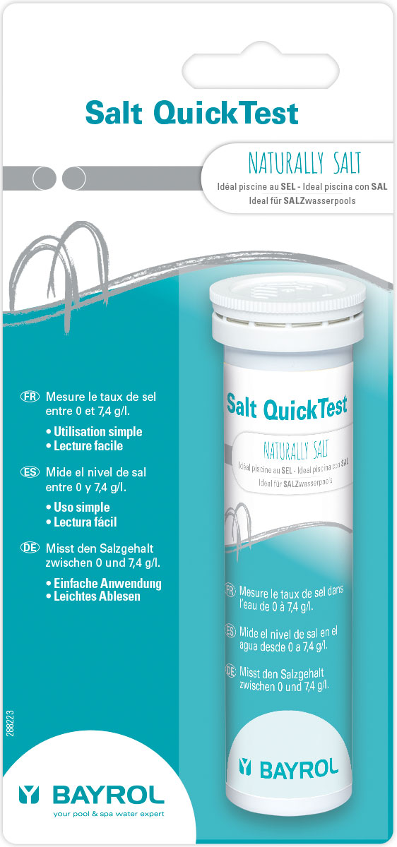 Ces bandelettes d’analyse permettent de contrôler en en quelques minutes la concentration de sel dans l’eau de la piscine.