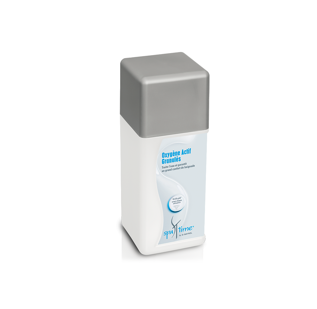 • Contrôlez la teneur en oxygène actif à l’aide des Bandelettes 5 analyses SpaTime impérativement dès que les granulés sont entièrement dissous pour une mesure correcte. La valeur doit être au minimum de 8 mg/L. Si cette valeur n’est pas atteinte, ajoutez une nouvelle fois la même quantité.